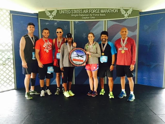 Ten years later and hundreds of races including the London Marathon and a broken neck later, I am still running. The half marathon remains my race of choice. After breaking my neck in a car accident, and being in a titanium halo for three months, my only goal was to run again. And I did. 2020 was my sixth AF Half. A high school friend from another state posted pictures one year of a group of her friends she’d run with and I invited myself to join them the following year. Now my husband goes too and we look forward to the expo, the excitement of the run, the after party and seeing all of our race buddies. Each year someone new joins the group. My father served 22 years in the AF and my husband 7, so the military connection also makes this race special. Every year we make sure to register on January 1 to save $10!